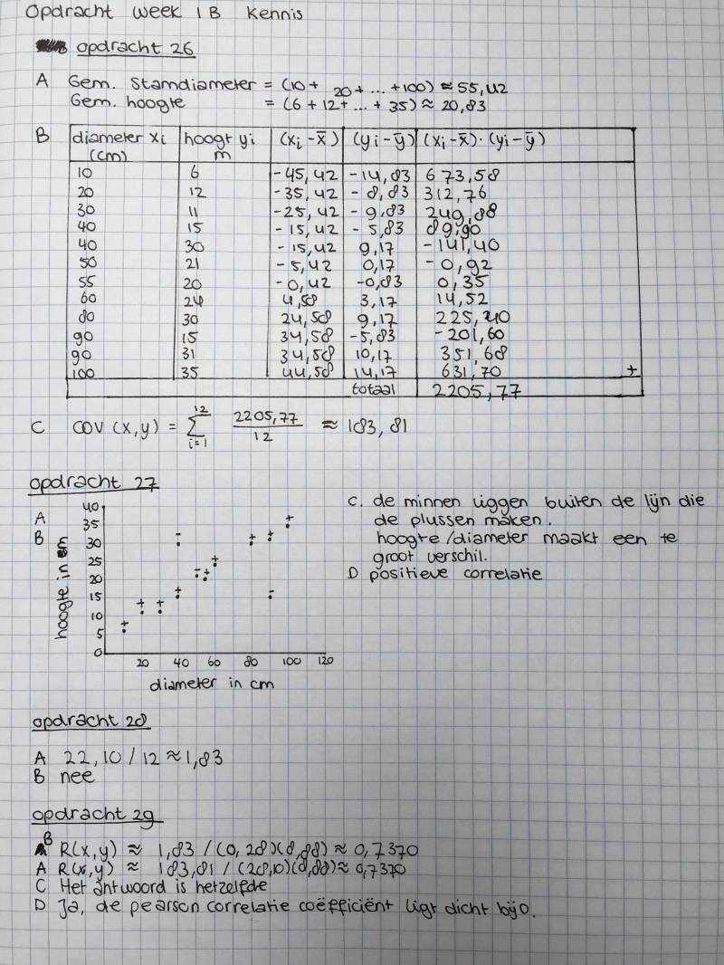 Voor opdracht 1B (kennen en kunnen) moesten we opgaven maken uit een NLT-module. Dit waren paragrafen 4.3 en 4.4. De NLT-module ging over meten en interpreteren. Ik vond het best wel lastig en de uitwerkingen waren heel erg lang. Ik heb veel met de rekenmachine gedaan. Daardoor staan niet de volledige uitwerkingen opgeschreven. Hieronder kunt u mijn uitwerkingen zien.